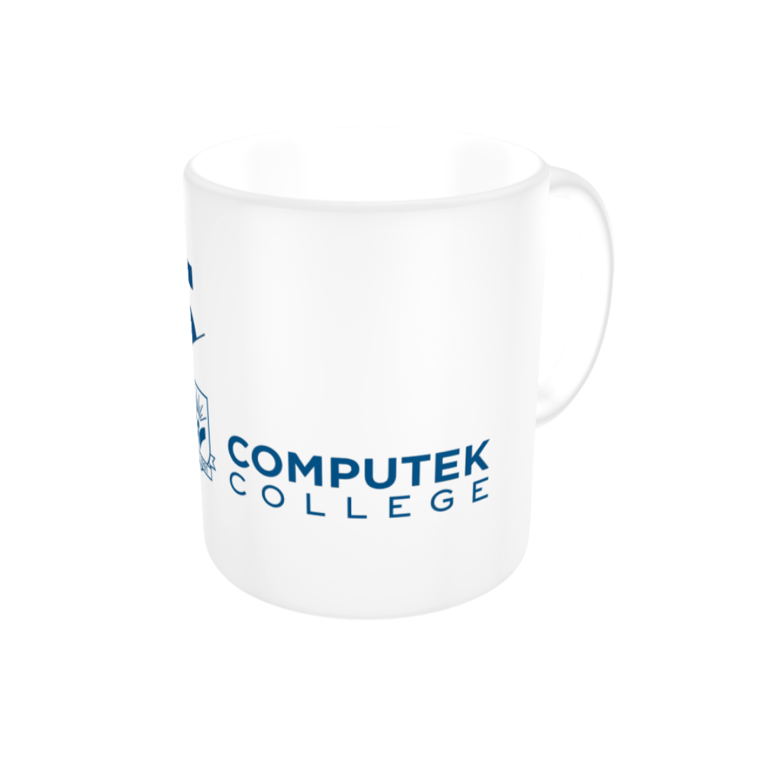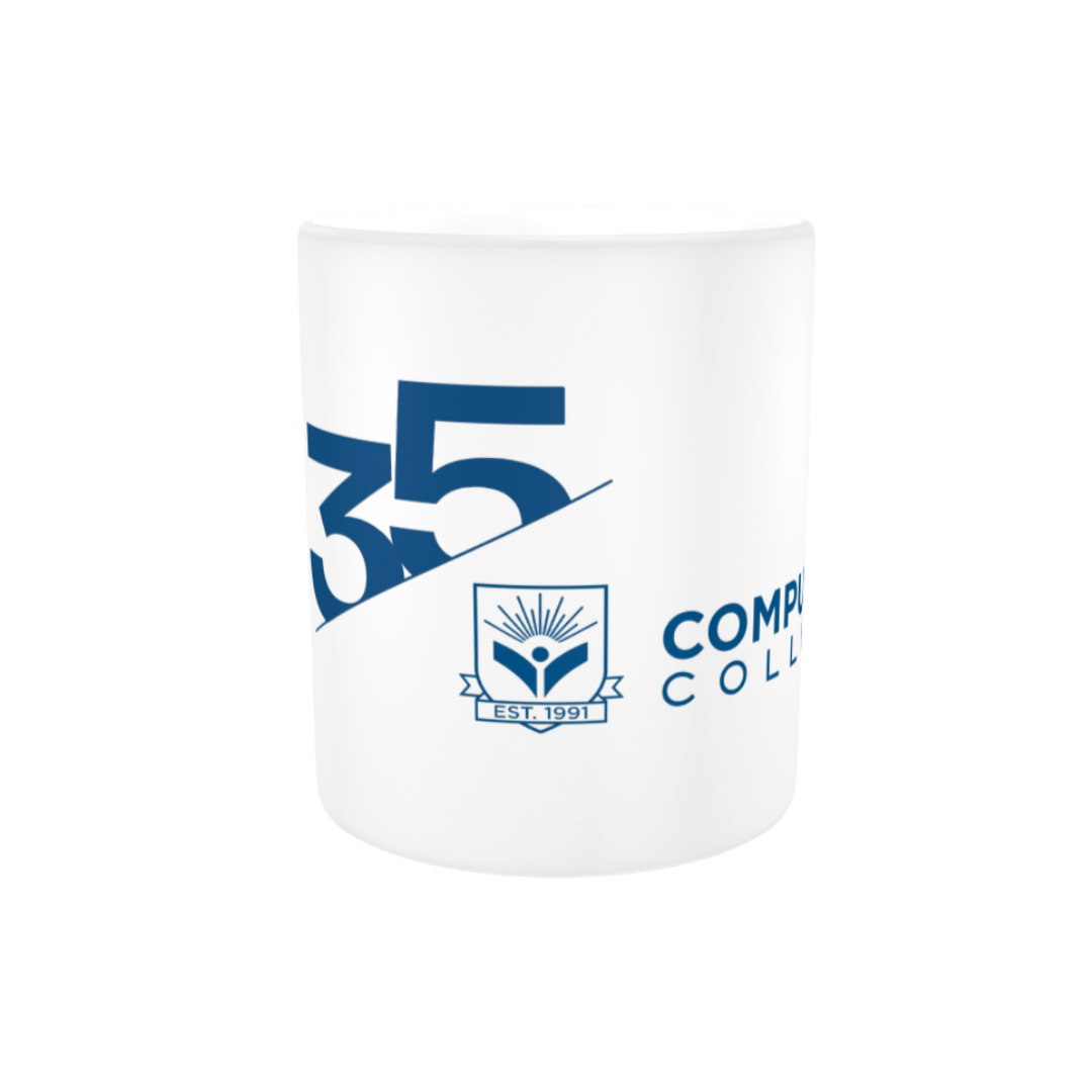 11 oz. ceramic mug, dishwasher- and microwave-safe with 35th-Anniversary Computek College logo.